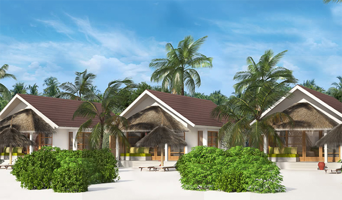其中94栋沙滩泳池别墅,享有日出和日落的海洋全景观;